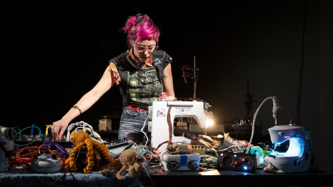 Agente Costura is a continuous building site for self playing, oscillating, blinking, touch sensitive, light sensitive, talking, soft, found, stitched, glitched, and hacked instruments, acting and reacting in an ever fluctuating state of chaos.